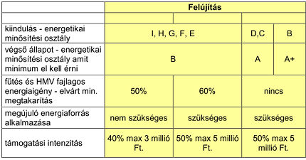 - felújÃtásnál 50%os támogatás esetén